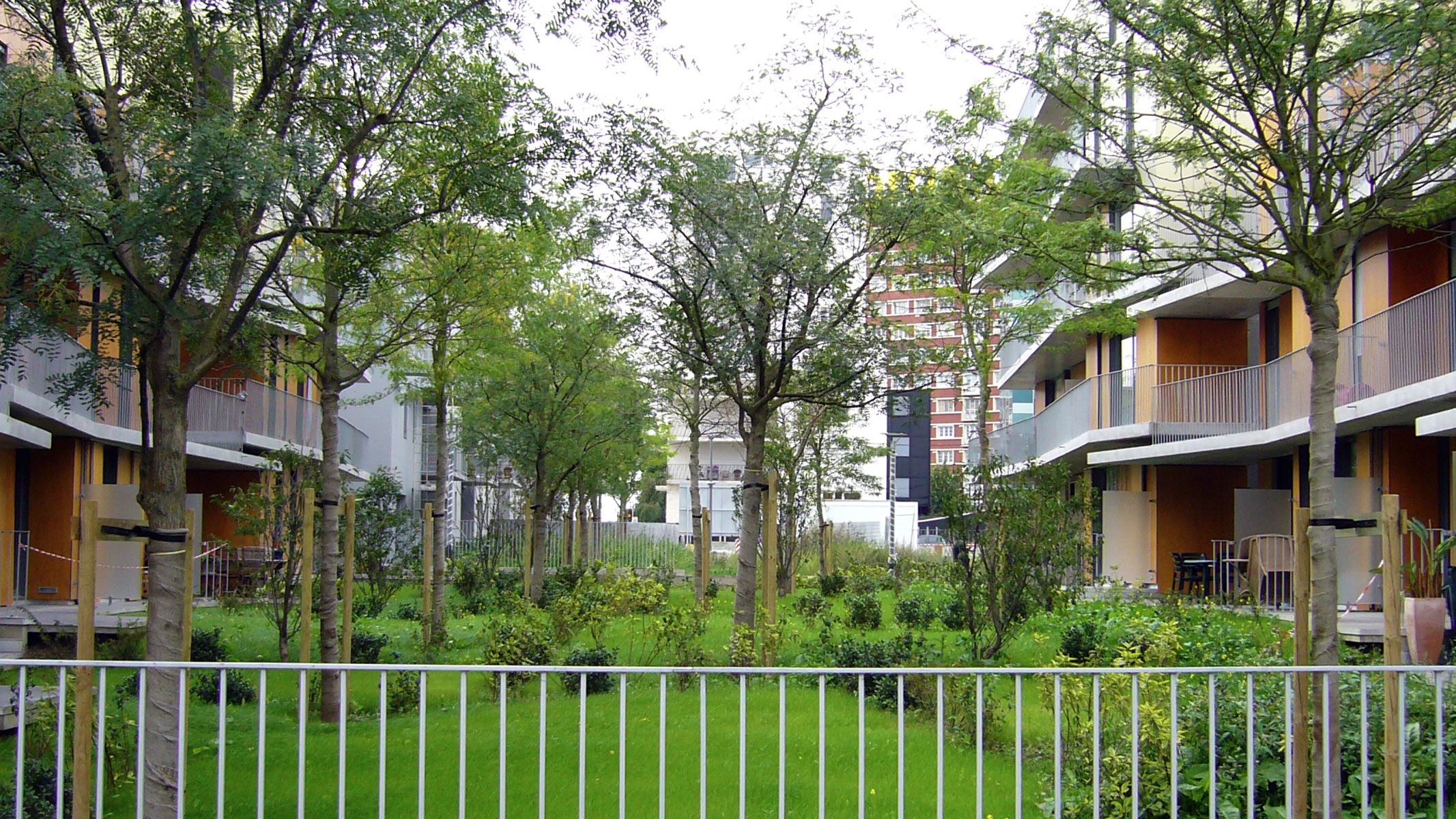 Grande opération d’urbanisme du cœur de Lille, le quartier d’affaire Euralille se voit prolonger depuis 2000 d’une seconde opération. Au sein de la zone d’aménagement Euralille 2 (qui s’étend sur 22 hectares), le projet du bois habité propose une forme originale d’habitat où la végétation, à la source de l’opération, offre de multiples ambiances en réponse à la diversité qu’offrent les bâtiments. Le cœur de ce bois habité décline un concept d’espaces publics où, grâce au stationnement souterrain, le piéton se retrouve maître de la surface, en relation constante avec le sol.